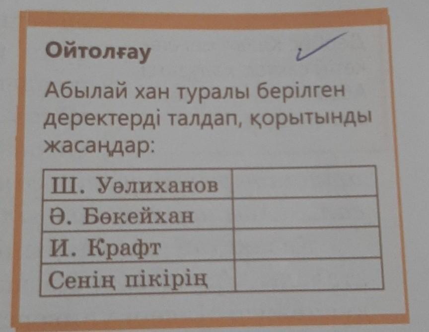 Ойтолғау Абылай хан туралы берілген деректерді талдап, қорытынды жасаңдар: Ә. Бөкейхан