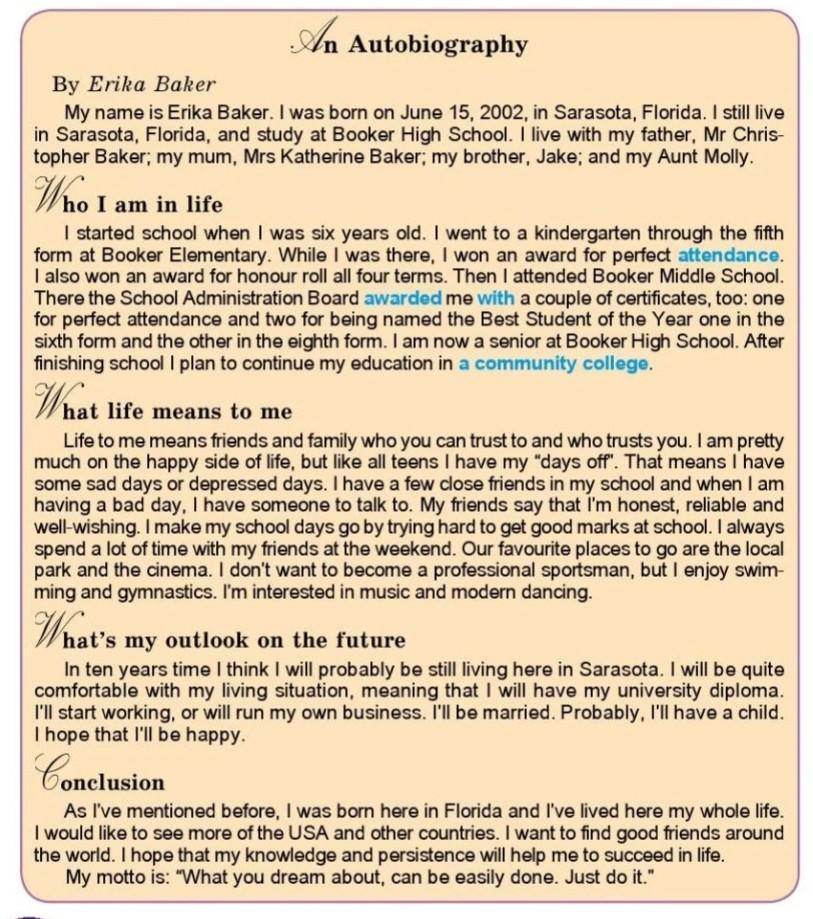 4. Erika thinks that winning awards for perfect attendance and being named the Best Student of the Year are important examples from her school life.