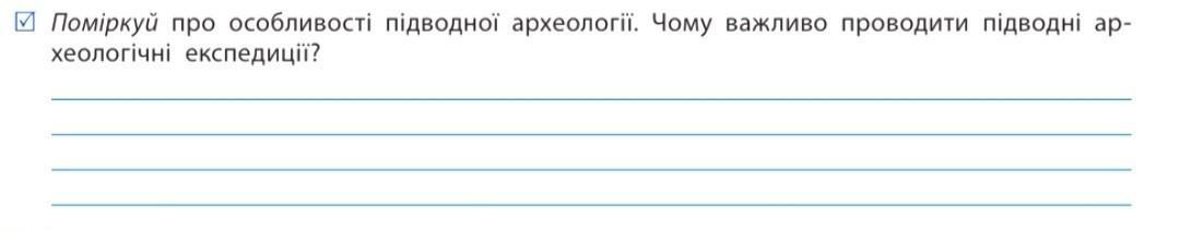 Поміркуй про особливості підводної археології. Чому важливо проводити підводні ар- хеологічні експедиції?