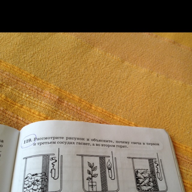свеча выделяет углекислый газ а растение поглощает его и вырабатывает кислород по этому во 2 стакане горит свеча
