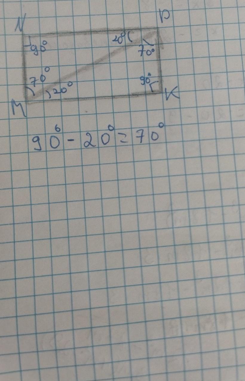 Угол NPM = угол РМК (как накрест лежащие углы) = 20°