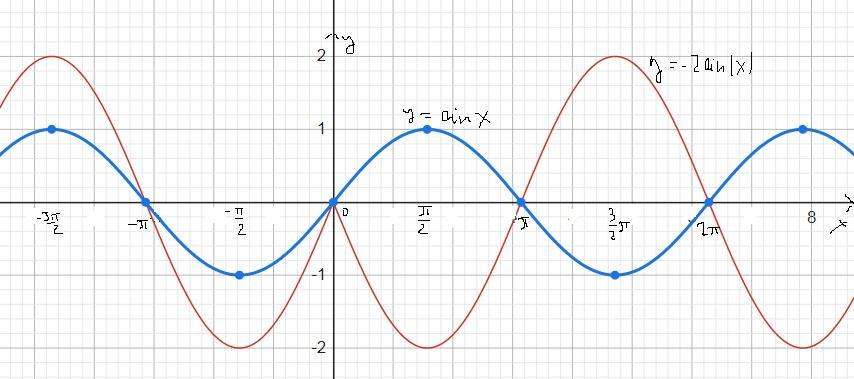 отображаем симметрично относительно оси ОУ получаем получаем y = -2sinIxI