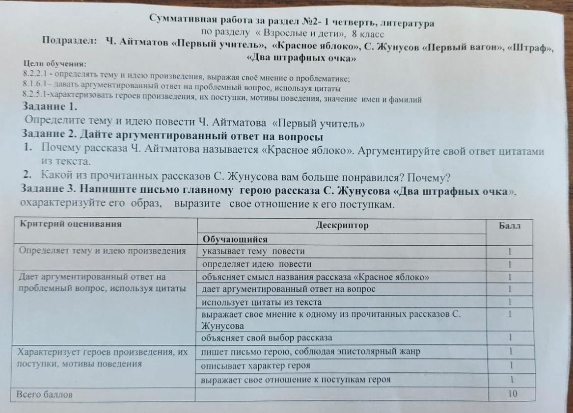 Задание 3. Напишите письмо главному герою рассказа С. Жунусова «Два штрафных очка», охарактеризуйте его образ, выразите свое отношение к его поступкам.