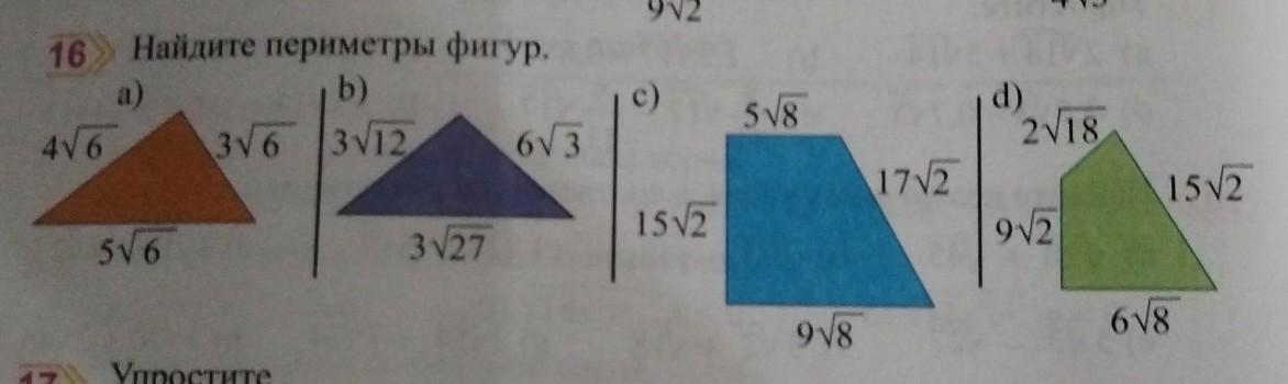в) 5√8+9√8+17√2+15√2=10√2+18√2+17√2+15√2=60√2