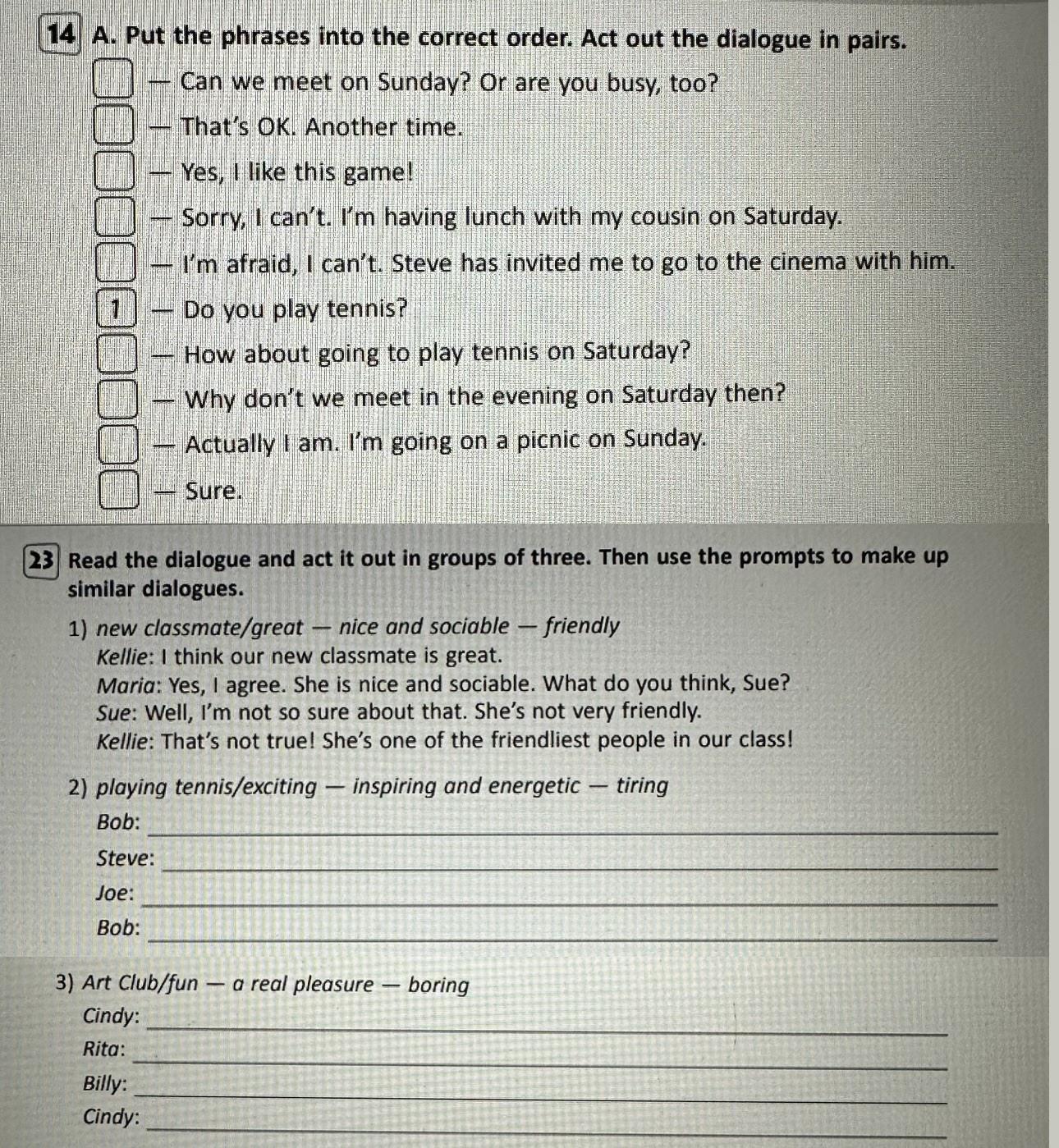 2) playing tennis/exciting - inspiring and energetic - tiring