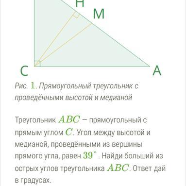 Таким образом, больший из острых углов треугольника ABC равен 51 градус.