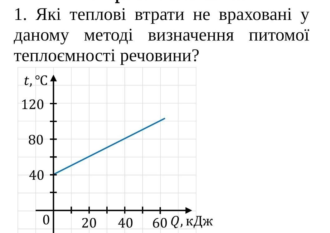 1. Які теплові втрати не враховані у даному методі визначення питомої теплоємності речовини?