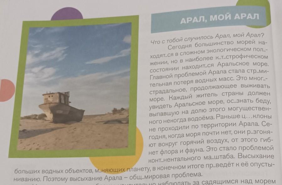 Сегодня большинство морей находятся в сложном экологическом положении, но в наиболее катастрофическом состоянии находится Аральское море. Главной проблемой Арала стала стремительная потеря водных масс. Это многострадальное, продолжающее (действит.) выживать (п/о) море×. Каждый житель страны должен увидеть Аральское море, осознать беду×, выпавшую (действит.) на долю этого могущественного некогда водоема (п/о). Раньше циклоны не проходили по территории Арала. Сегодня, когда моря почти нет, они разгоняют вокруг горячий воздух, от этого гибнет флора и фауна. Это стало проблемой континентального масштаба. Высыхание больших водных объектов×, меняющих (действ.) планету (п/о), в конечном итоге приведет к её опустыниванию. Поэтому высыхание Арала - общемировая проблема.