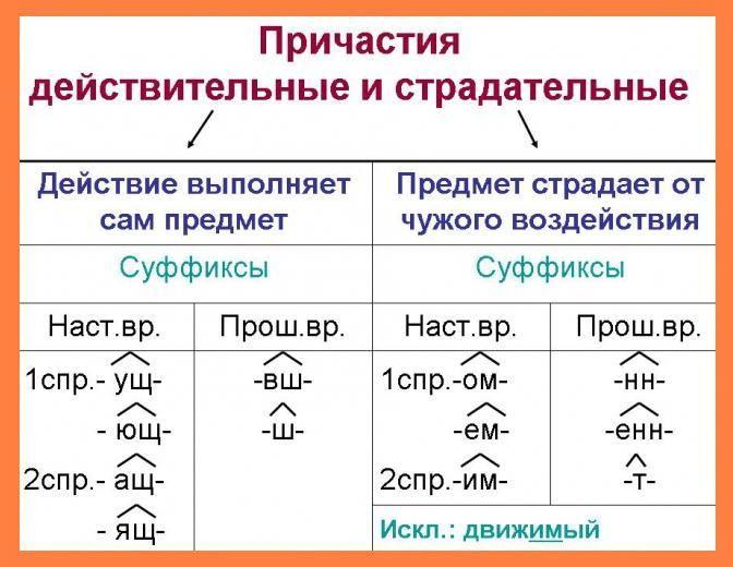 Разряд причастия поможет определить его суффикс (см. в таблице приложения).