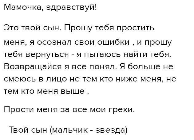 Найди в библиотеке и прочитай всю сказку. Узнай,как Мальчик-звезда справился с различными испытаниями. Напиши письмо от имени мальчика его маме.