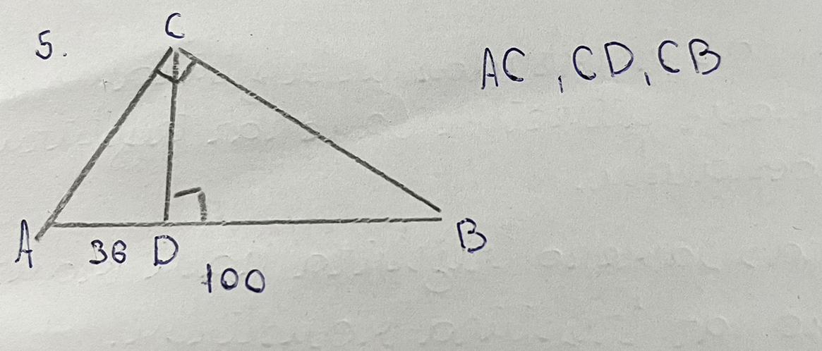 AD= 36cm, AB= 100cm, C=90 градусов. Вычислить AC, CD, CB. Помогите пожалуйста, срочно!!! Даю 40 баллов.