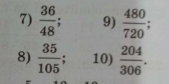 7) 36/48=6/8 8)35/105=7/21 9)480/720=2/3 10)204/306=2/3