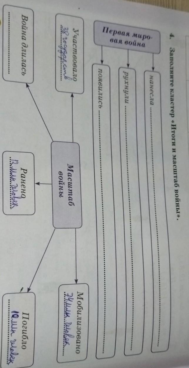 Ответ:1 августа 1914 г. началась, 11 ноября 1918 рухнулась, 4 года длилась, Экономические последствия Последствия войны были катастрофическими для народного хозяйства большинства стран. Прямые военные потери воевавших стран составили 208 миллиардов долларов и превысили в 12 раз золотой запас европейских стран. Была уничтожена треть национального богатства Европы.