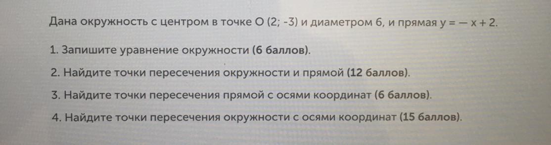 4) Подставим в уравнение окружности х, потом у, равные 0.