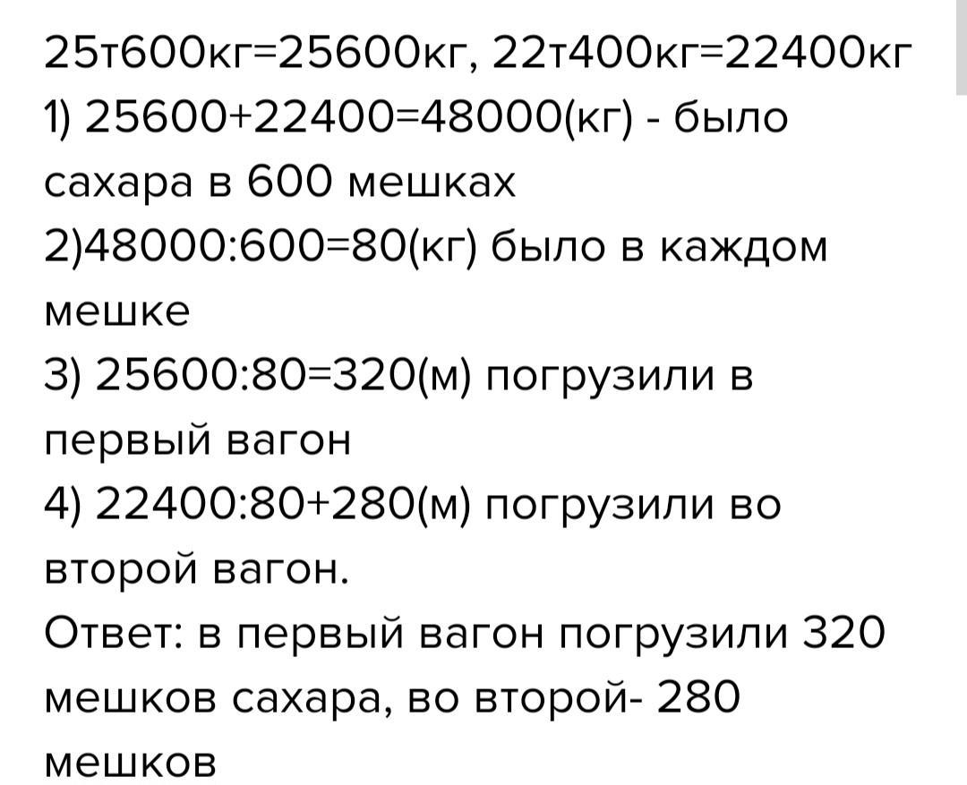 481. В два вагона погрузили 600 мешков сахара с одинаковой массой В один из них погрузили 25 т 600 кг, а в другой 22 т 400 кг сахара Сколько мешков сахара погрузили в каждый из вагонов?