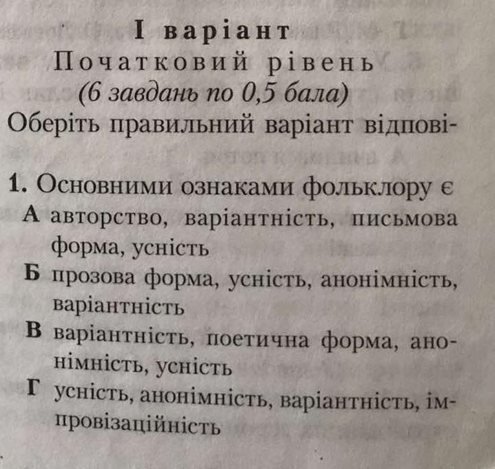 Г: усність,анонимність,варіантність,імпровізаційність. вибачте якщо десь буда помилка