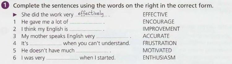 Complete the sentences using the words on the right in the correct form ► She did the work very effectively