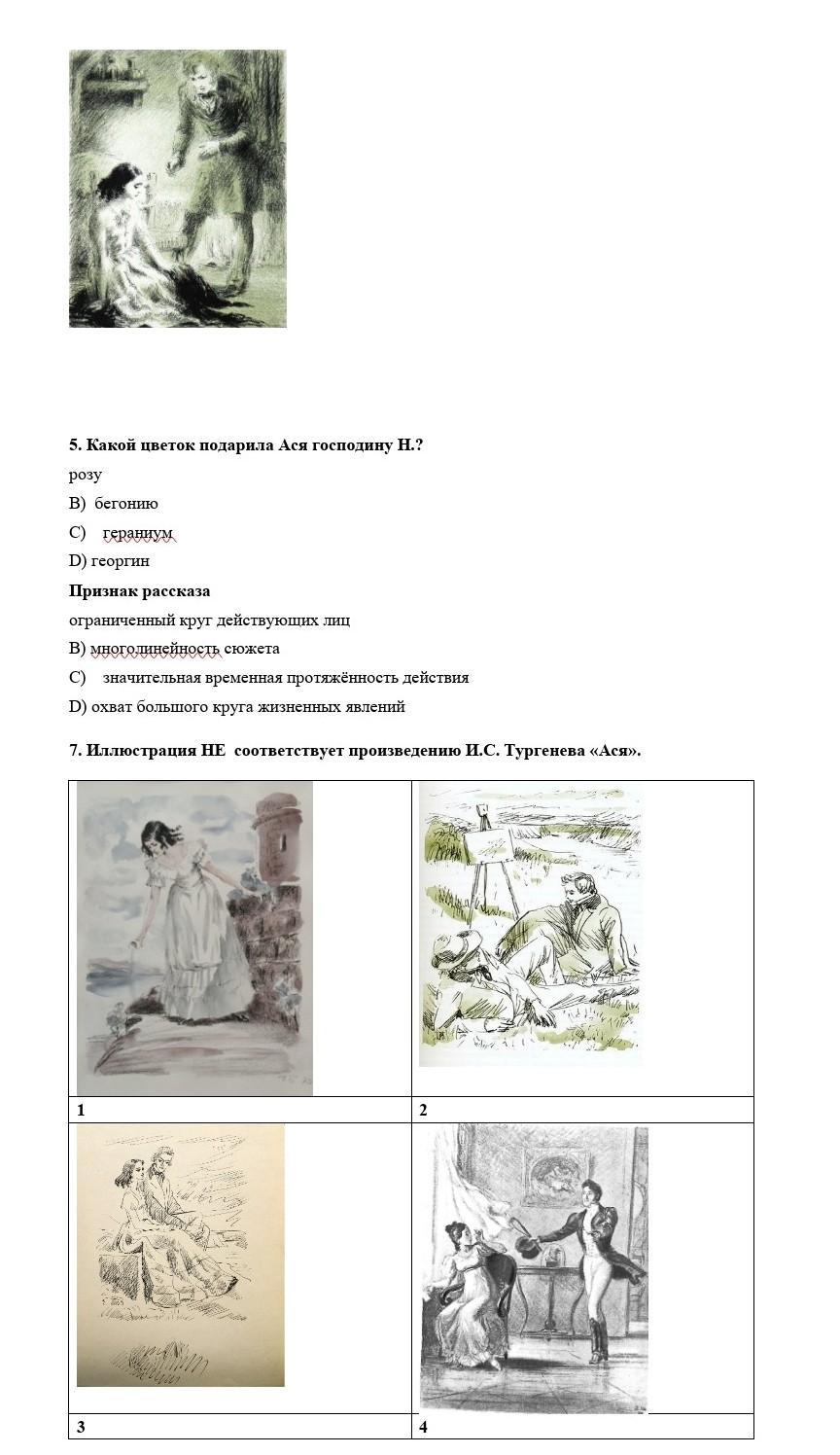 7. Иллюстрация НЕ соответствует произведению И.С. Тургенева «Ася».