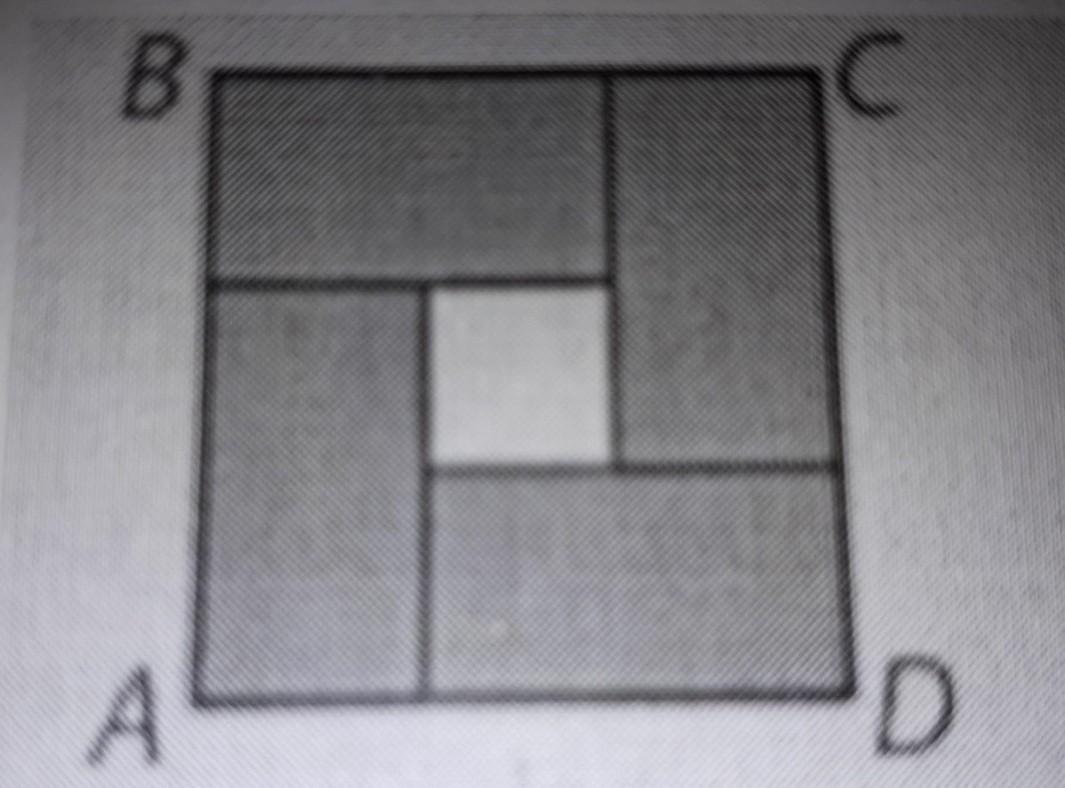 На малюнку зображено чотири рiвнi прямокутники, розміщені всередині великого квадрата ABCD. Периметр кожного прямокутника дорівнює 16 см. Чому дорівнює периметр цього квадрата?