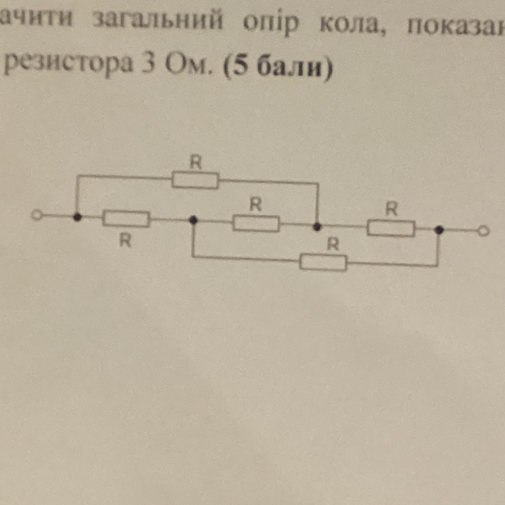 Даю все баллы. Визначити загальний опір кола, показаного на схемі. Опір кожного