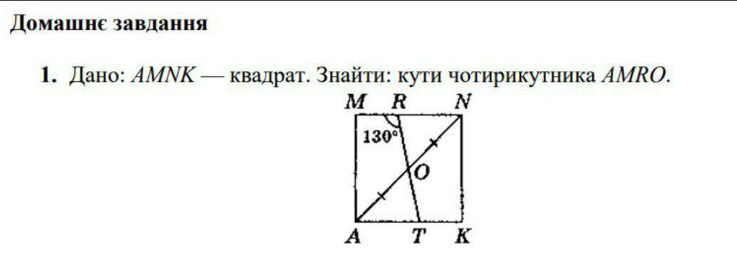 ∠АМR=90°=∠МАК(квадрат же); ∠MAN=∠NAK=90°/2=45°(AN - Биссектриса); сумма углов 4-х угольника равна 360° (180°(n-2)=180°×2=360°), это означает, что мы почти у цели: