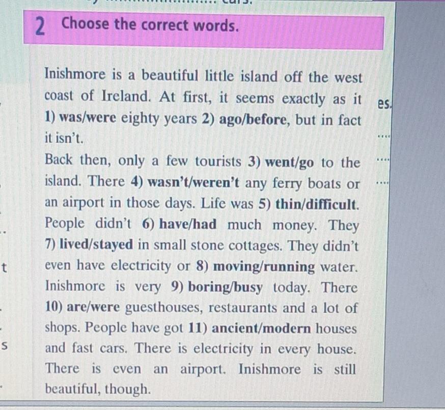 1) was 2)ago 3)went 4)weren’t 5) difficult 6)have 7)stayed 8)running 9)busy 10)are 11)modern