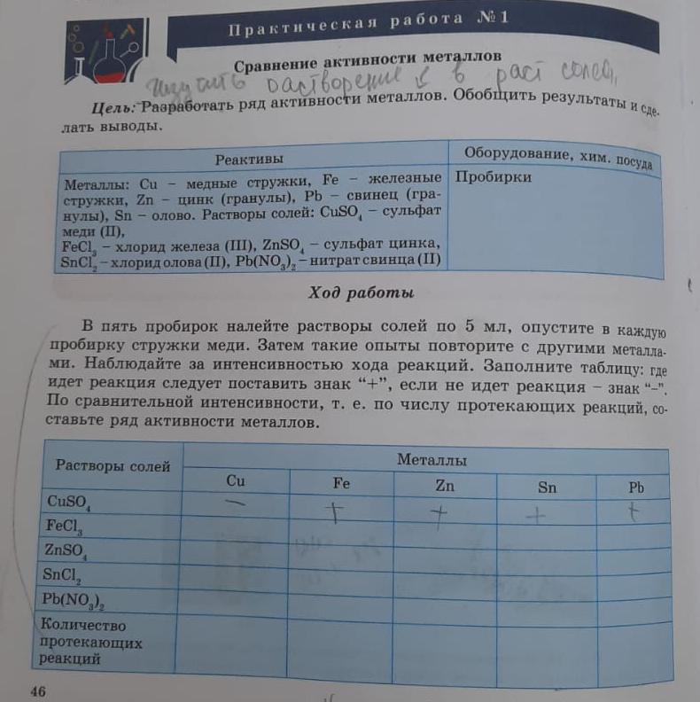 ми. Наблюдайте за интенсивностью хода реакций. Заполните таблицу: где