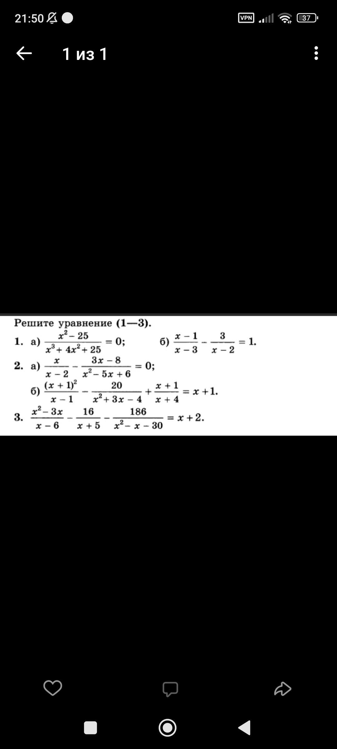 1. а) \( \frac{{x^2 - 25}}{{x^3 + 4^2 + 25}} = 0 \)