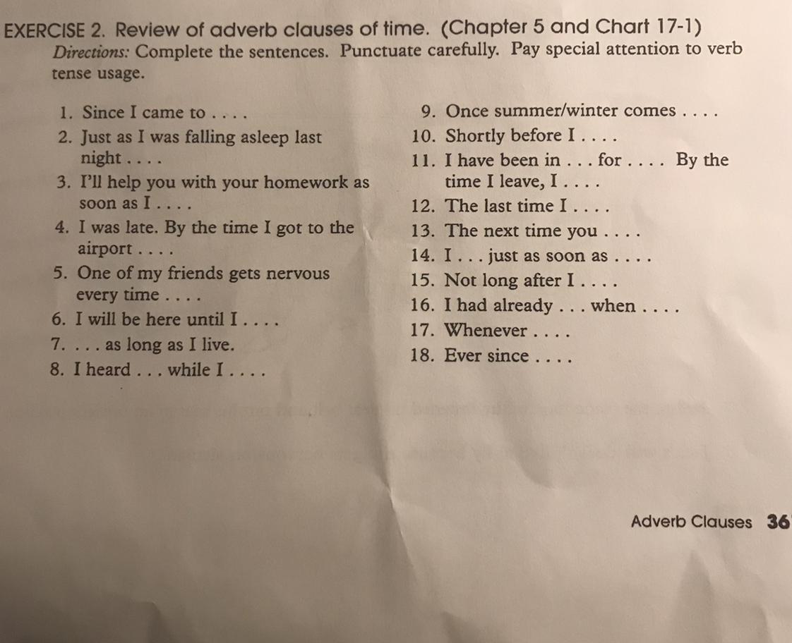 Complete the sentences. Punctuate carefully. Pay special attention to verb tense usage.