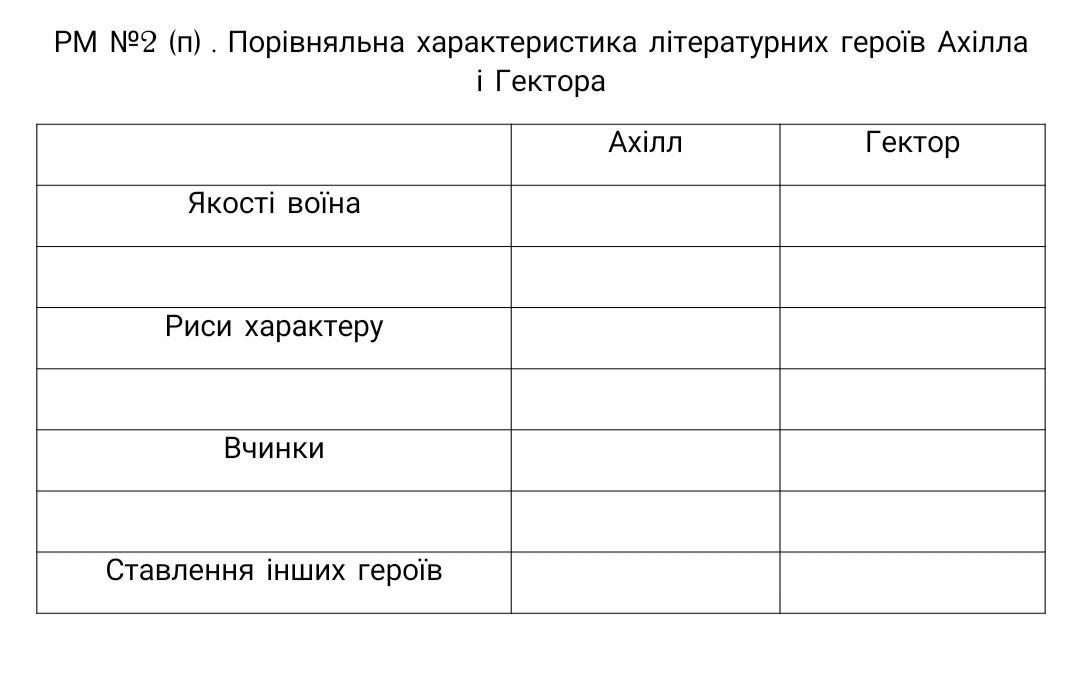 Зарубежная литература помогите скласти порівняльну характеристику фото додаю Ахіла і Гектора