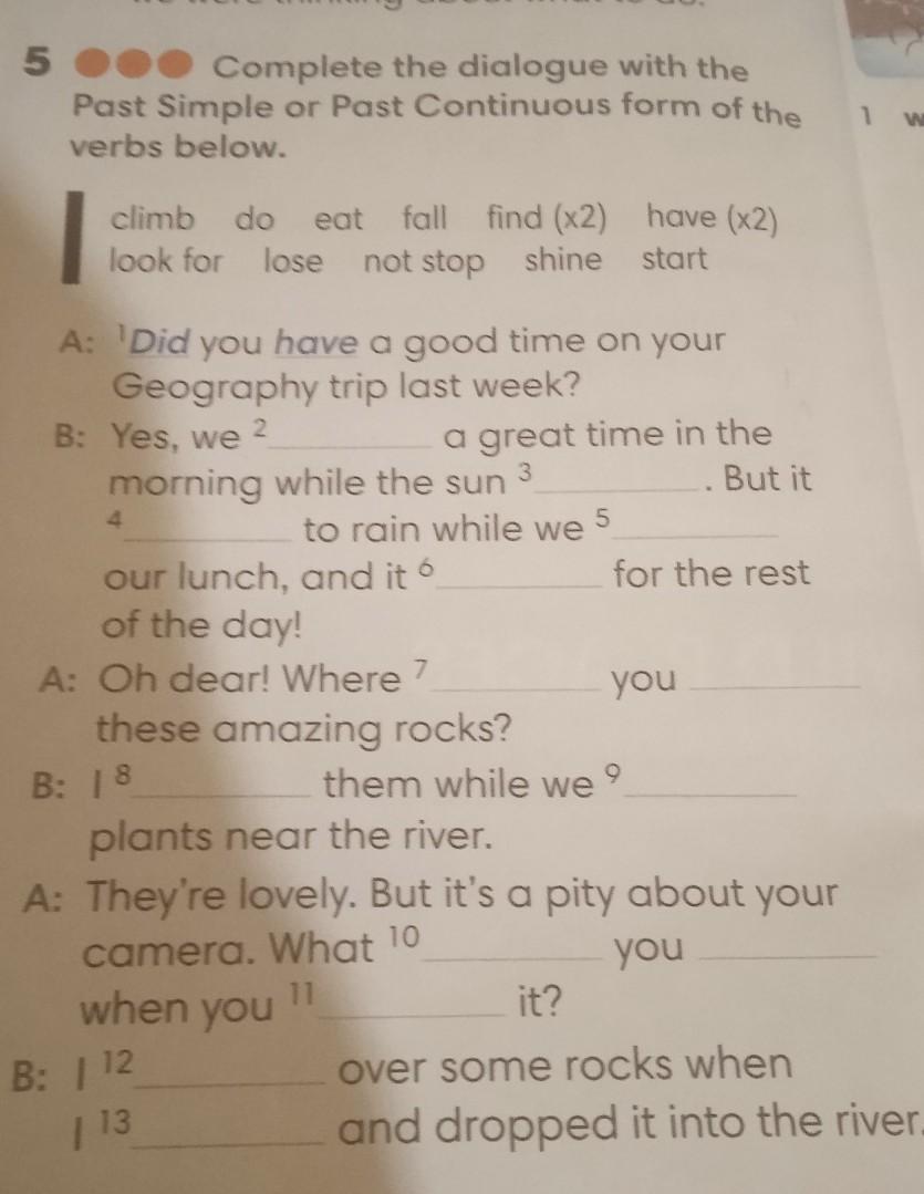 4Complete the sentences with when or while. 1I hurt my arm while I was playing tennis yesterday. 2 Jess was waiting for us we got home. 3 we stayed inside the snow was falling 4 my phone rang I was watching TV 5 the weather changed suddenly we were thinking about what to do