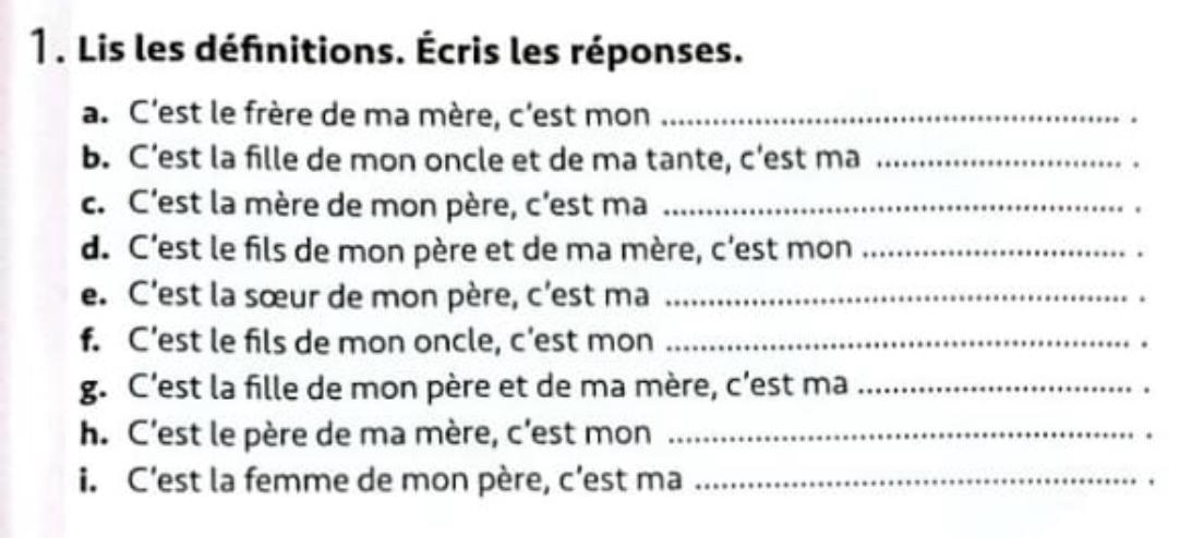 f. C'est le fils de mon oncle, c'est mon .....