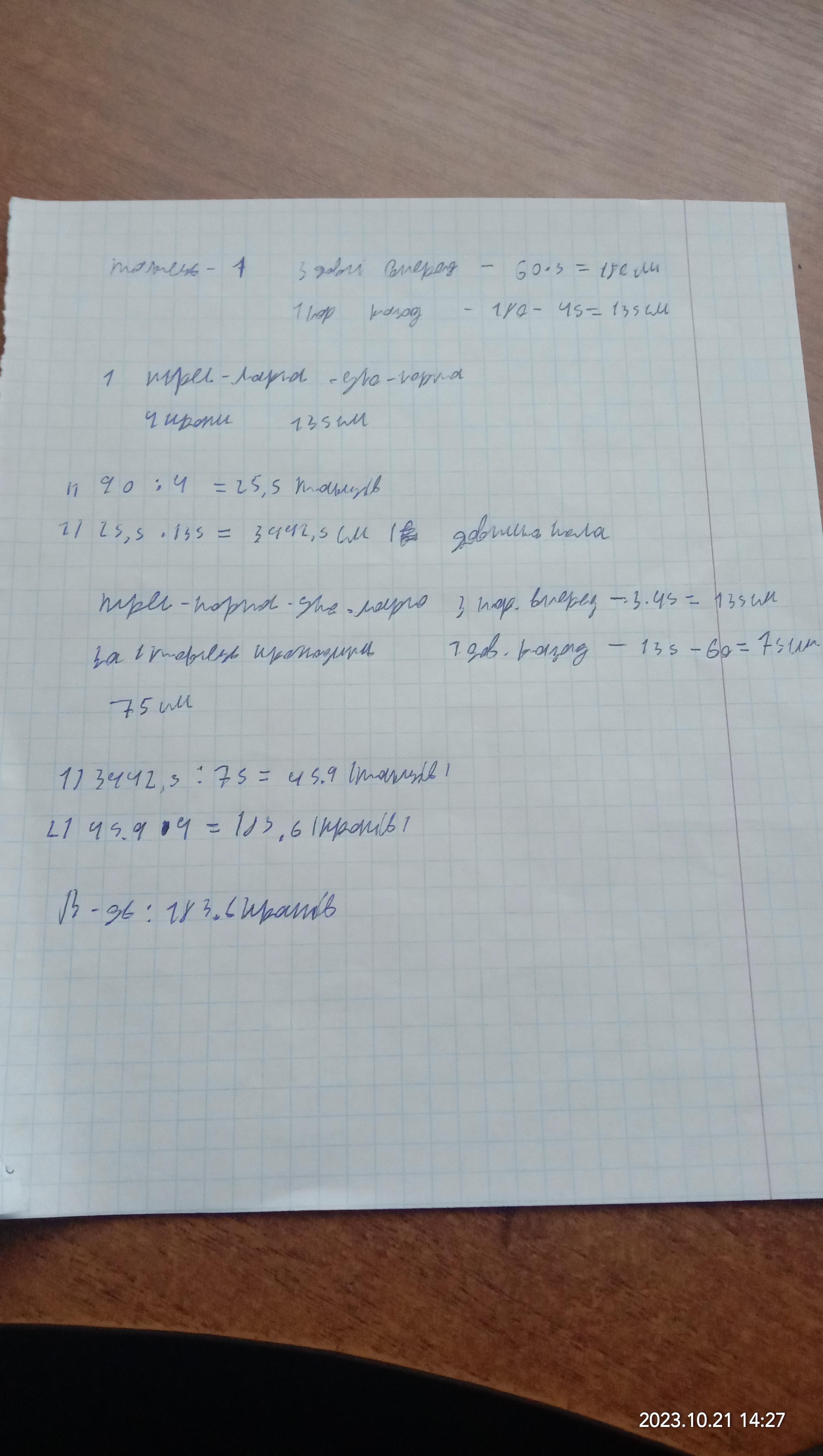 Марія любить танцювати по круговій стежинці навколо свого дому. Вона вміє ро бити кроки двох видів: короткі кроки довжиною 45 см та довгі кроки довжиною 60 см. Бабуся навчила Марію двом танцям: трес-ларгос-уно-корто, коли виконуються 3 довгі кроки вперед та 1 короткий крок назад, і далі ці дії повторюються; та трес-кортос уно-ларга, коли виконуються 3 короткі кроки вперед та 1 довгий крок назад, і потім ці дії повторюються. Марія помітила, що коли вона танцює трес-ларгос-уно-корто то рівно за 90 кроків вона пройде по стежинці рівно одне коло, а коли вона танцює трес-кортос-уно-ларго, то рівно за и кроків вона пройде рівно одне коло. Зн Відповідь обґрунтуйте.