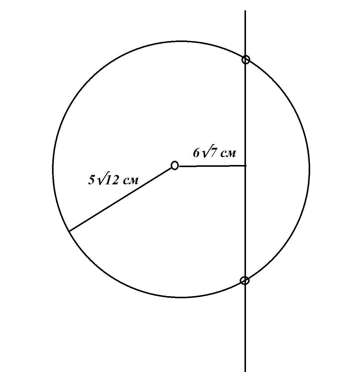 Сколько общих точек у окружности и прямой, если радиус окружности равен 5√12 см, а расстояние от центра окружности до прямой равно 6 √7 см?
