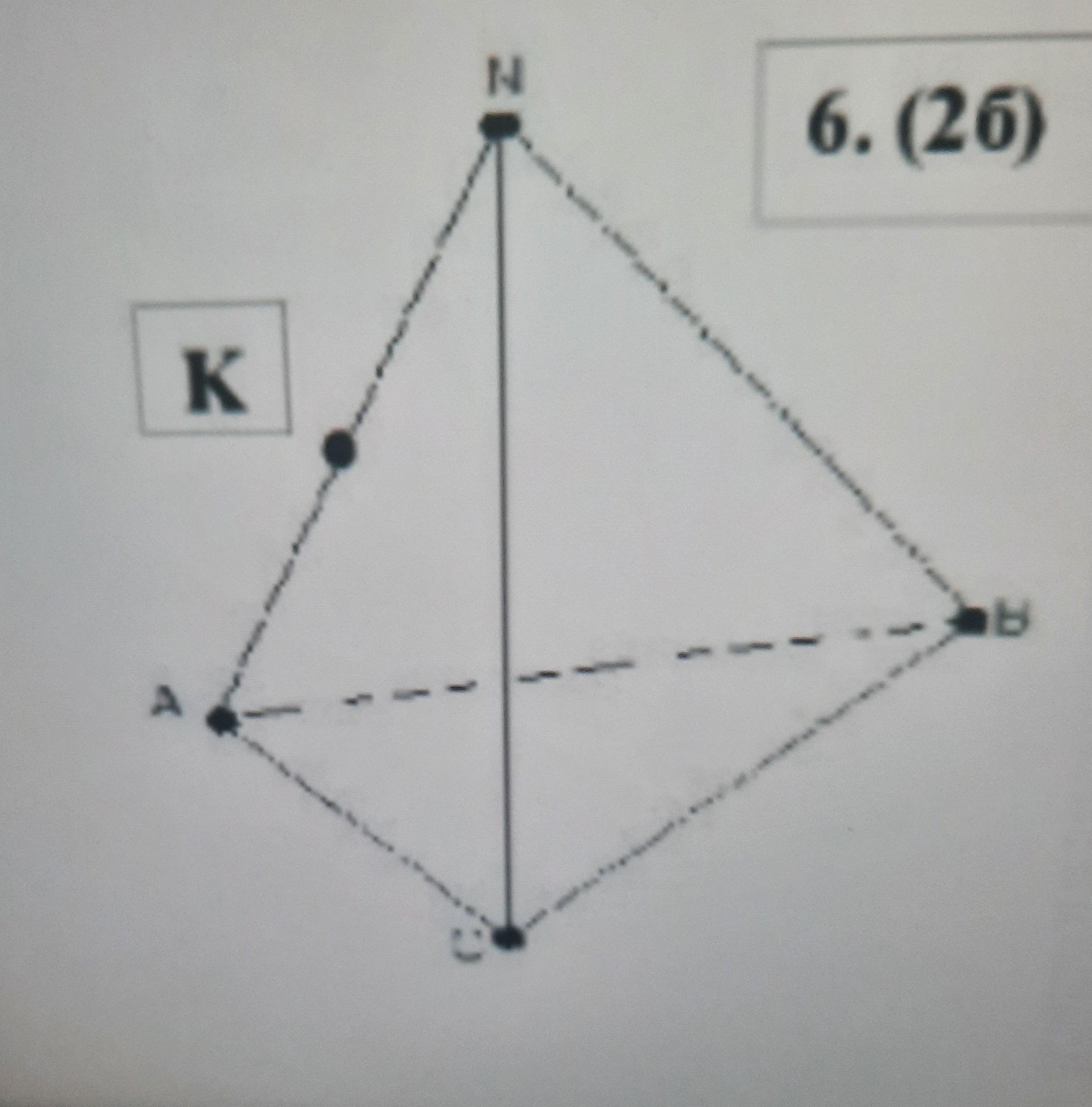 Дано зображення тетраедра NABC. К - середина ребра NA. Побудувати переріз площиною, що проходить через точку N та пряму СВ.