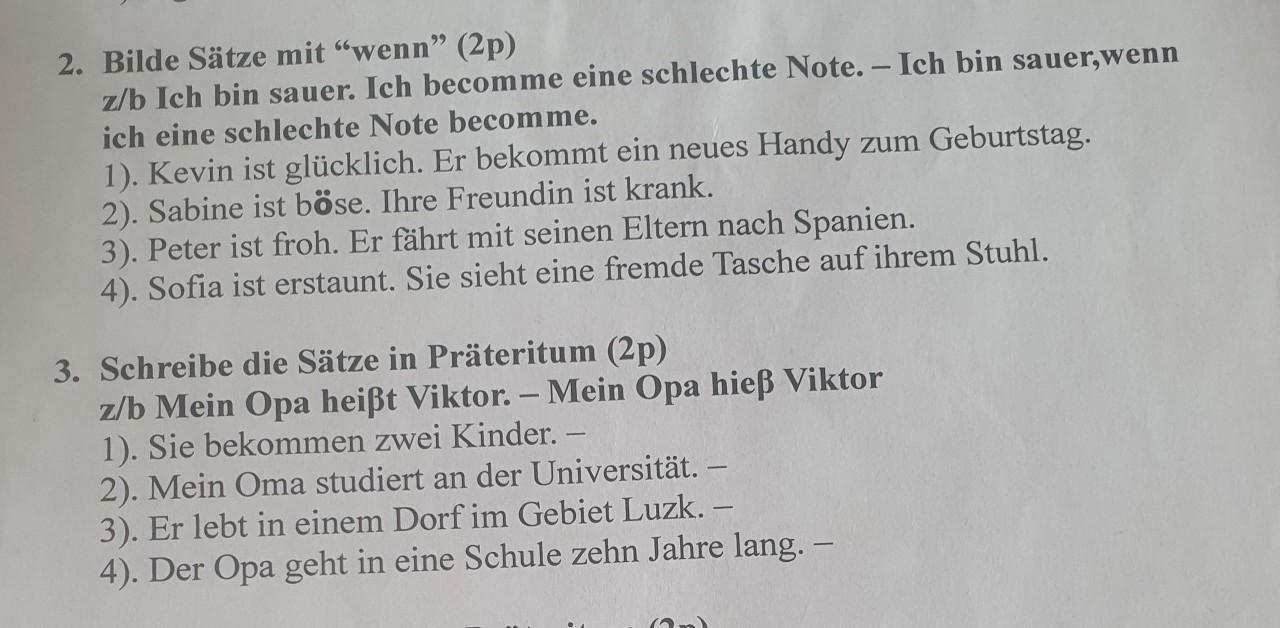 1) Sie bekommen zwei Kinder → Sie bekamen zwei Kinder.