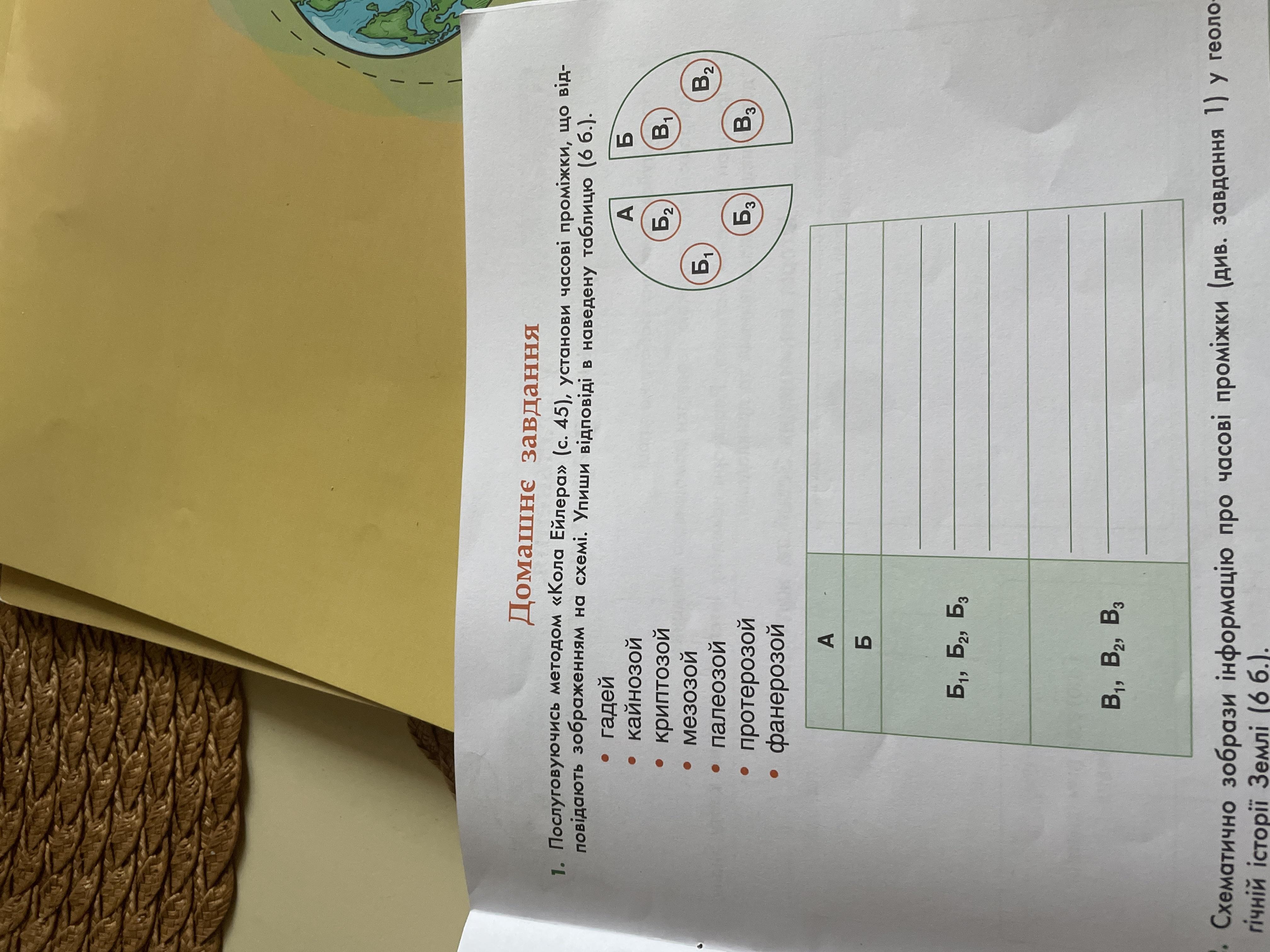 Послуговуючись методом «Кола Ейлера», установи часові проміжки, що відповідають зображенням на схемі. Упиши відповіді в наведену таблицю