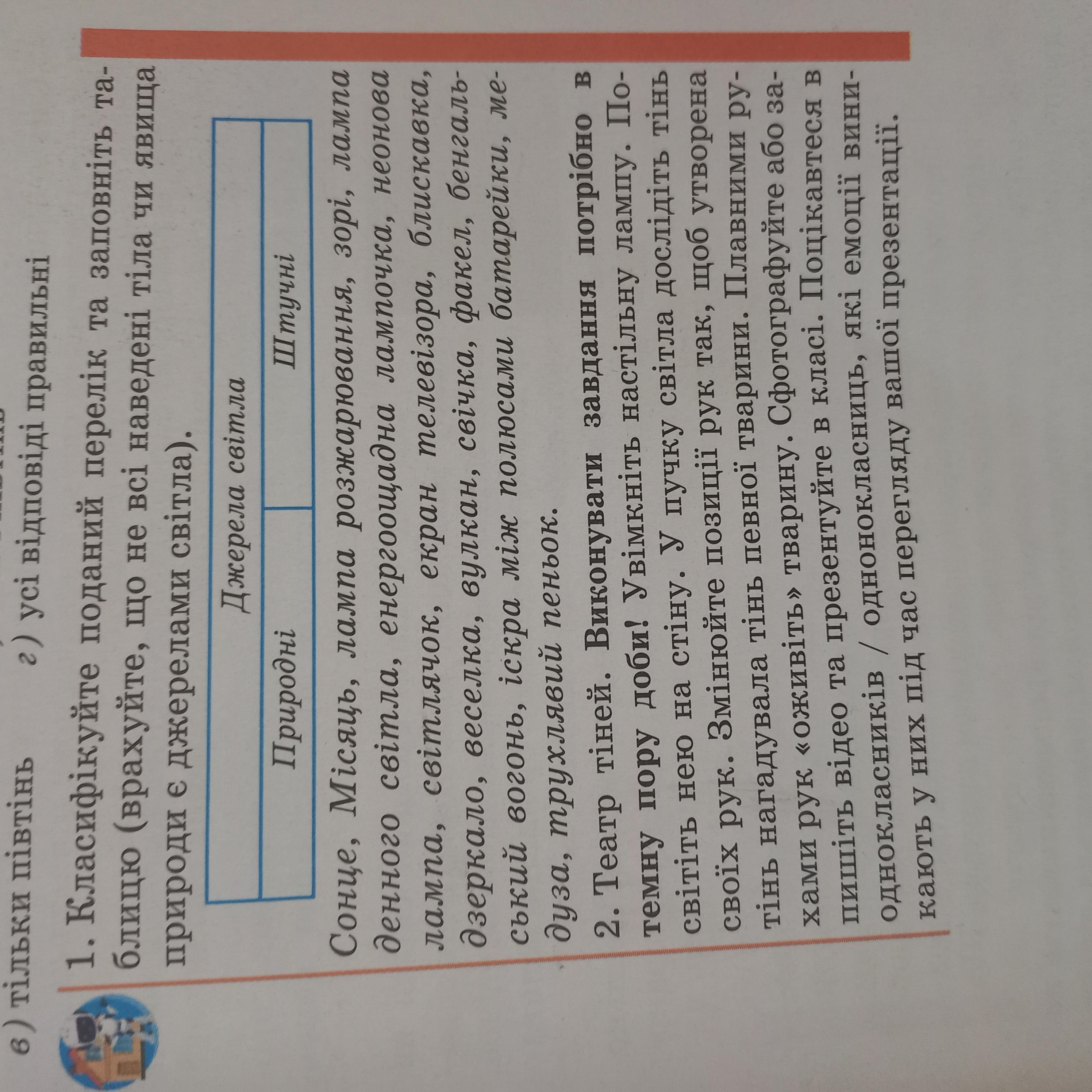 Природні—Сонце, Місяць, зорі, світлячок, блискавка.