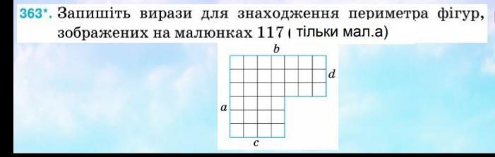 363*. Запишіть вирази для знаходження периметра фігур, зображених на малюнках 117 ( тільки мал.а)