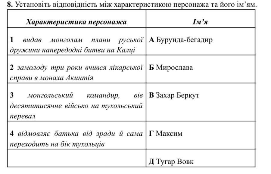 1) Тугар Вовк — видав монголам плани руської дружини напередодні битви на Калці, та знову стає зрадником, приводячи монголів до Тухлі.