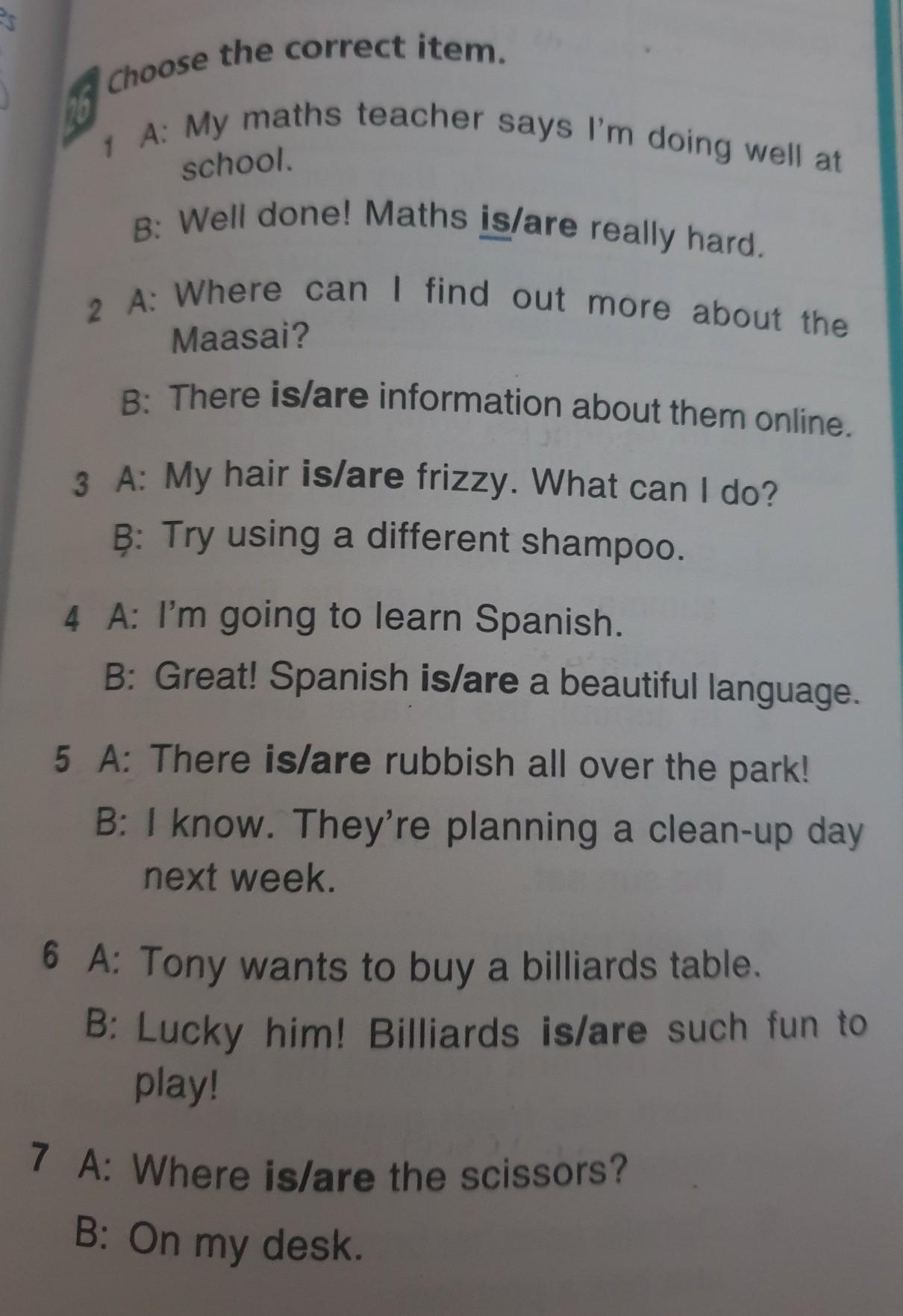 1 A: My maths teacher says I'm doing well at school. B: Well done! Maths is really hard.