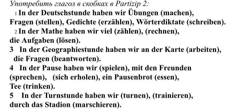 4 gespielt, gesprochen, uns erholt, gegessen, getrunken