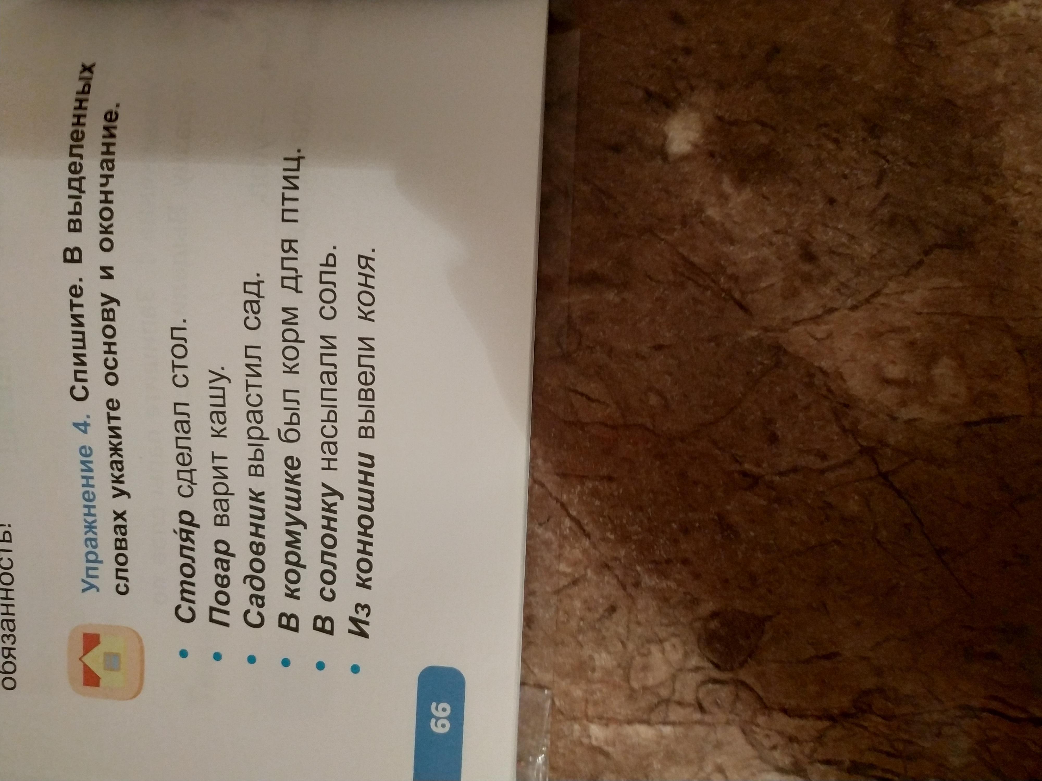 Упражнение 4 спишите. В выделенных словах укажите основу и окончание