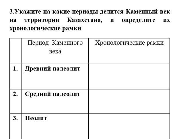 Ранний палеолит занимает период времени с 3 млн. по 300 тысяч лет назад;