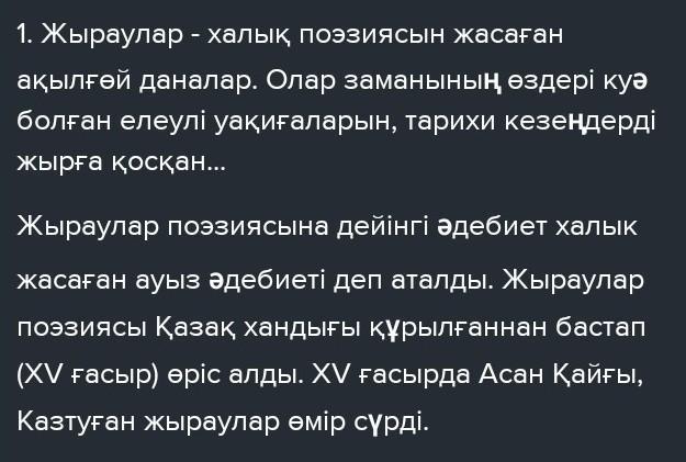 О Білу 1. Жыраулар поэзиясынын такырыбы кандай, оларга кандай ерекше лiктер тен болған? Жиембет жырау туралы не бiлдiндер? Жиембет жырау толғауларының тақырыптарын атаңдар. «Енсегей бойлы ер Есім» толғауында Есім хан калай бейнеленген? Өзі туралы жырау не дейді? 2. 3. 4. 5.