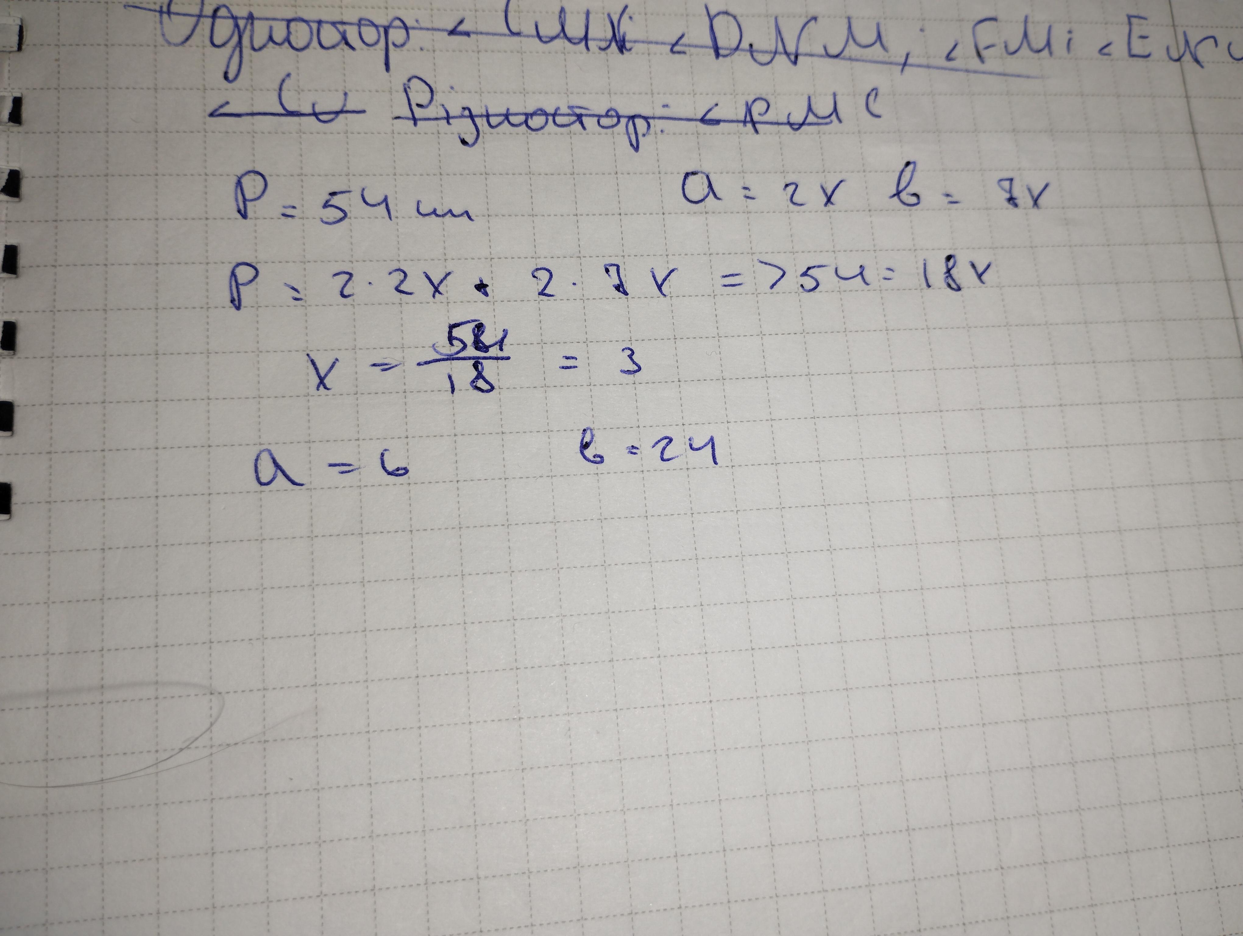 3. Периметр параллелограмма равен 54 см. Найдите стороны параллелограмма, ес- ли две его стороны относятся как 2:7. пожалуйста помогите(без скама пж)