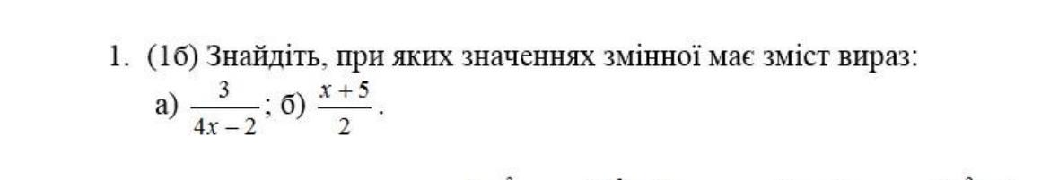 В знаменателе нет переменной , значит выражение имеет смысл при всех действительных значениях x , то есть x ∈ R .