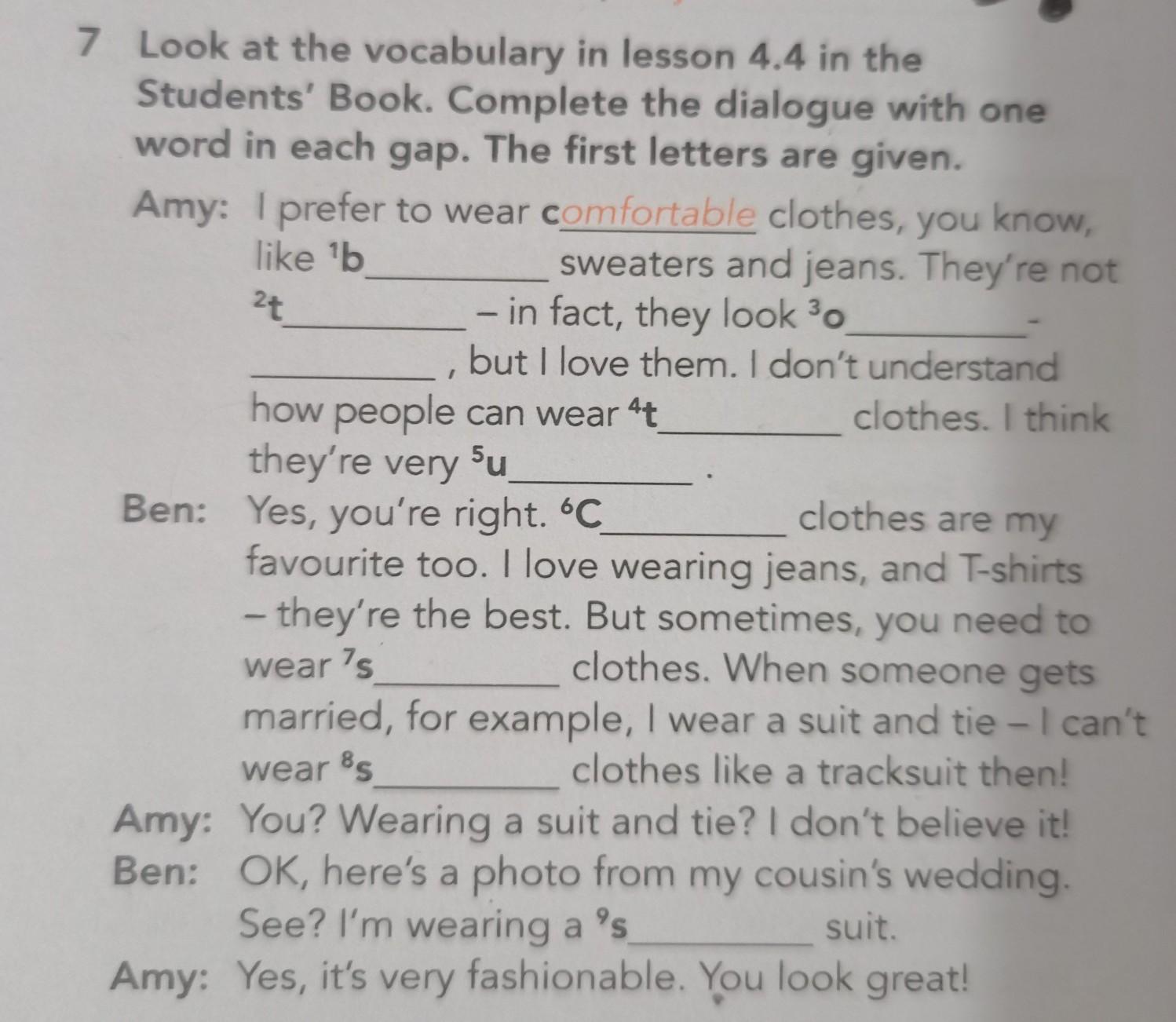 Ответ:так там по смыслу все понятно , у тебя перед глазами должен лежать учебник из урока 4.4, переводишь этот текст, и те слова , и какие подходят по первым буквам и по смыслу вставляешь, тут все слишком легко