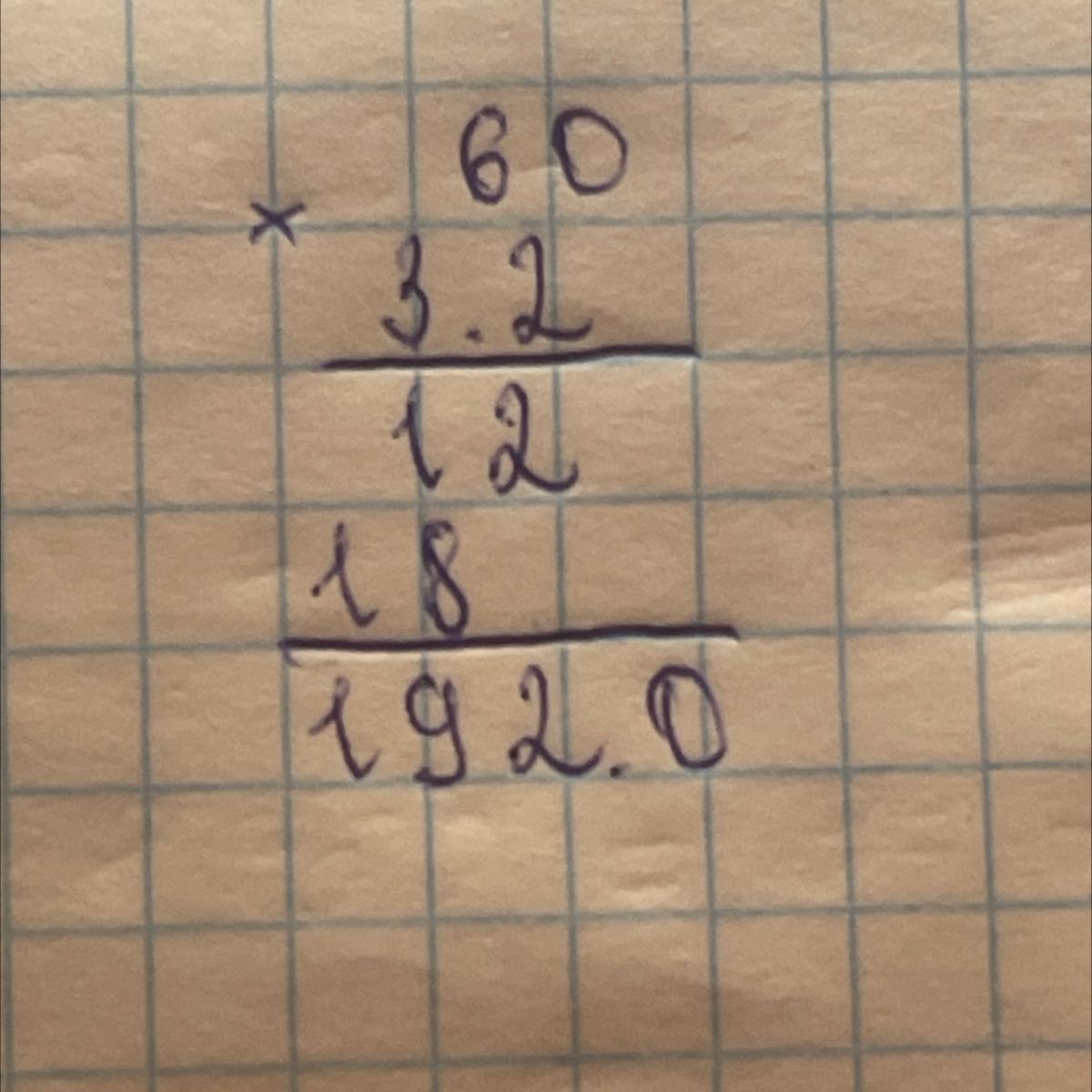 60 * 3,20 = 60 * 320/100 = 3 * 320/5 = 960/5 = 192
