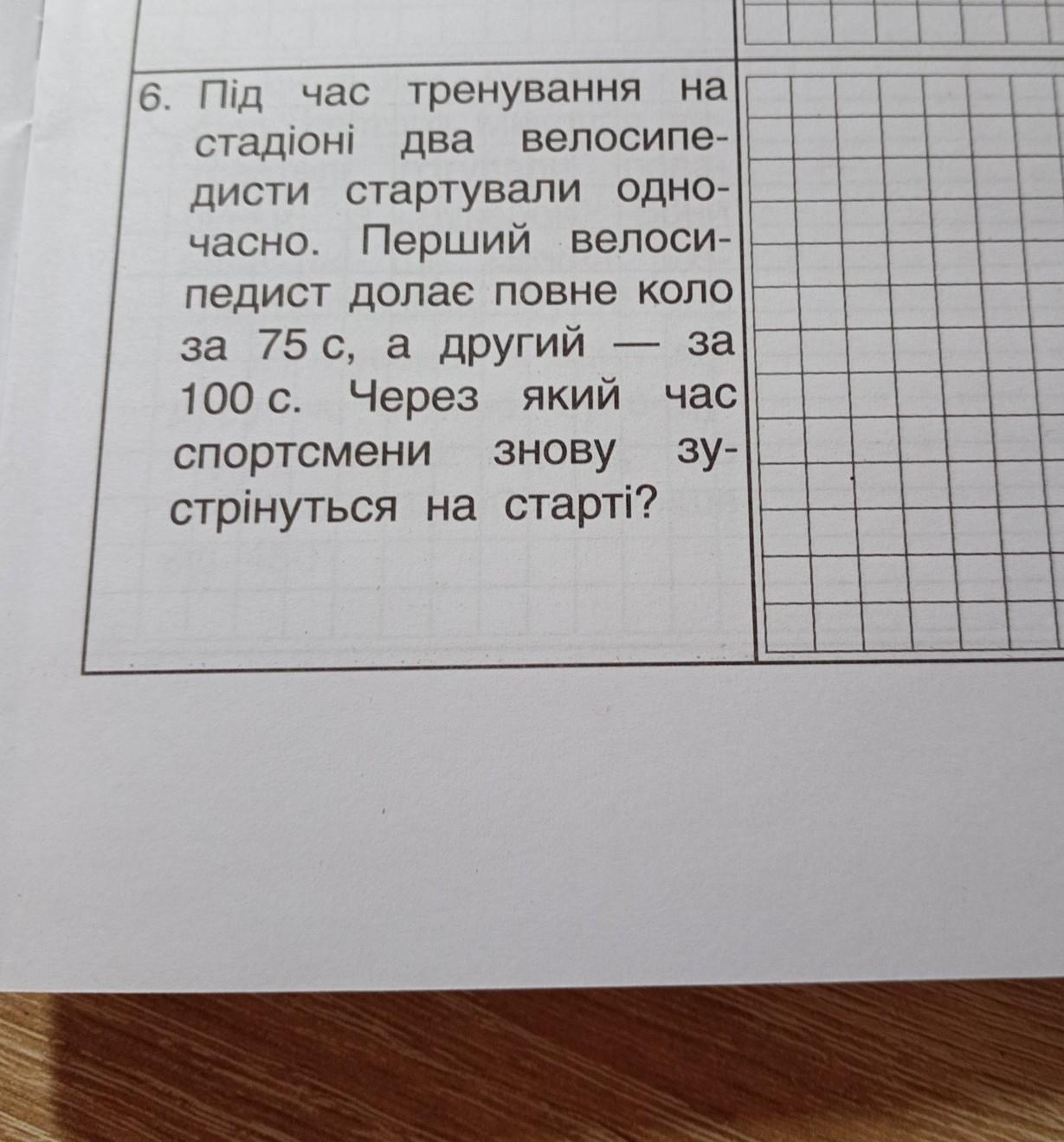 Відповідь: через 300 секунд(5 хвилин) після спільного старту велосипедисти зустрінуться на тому ж місці